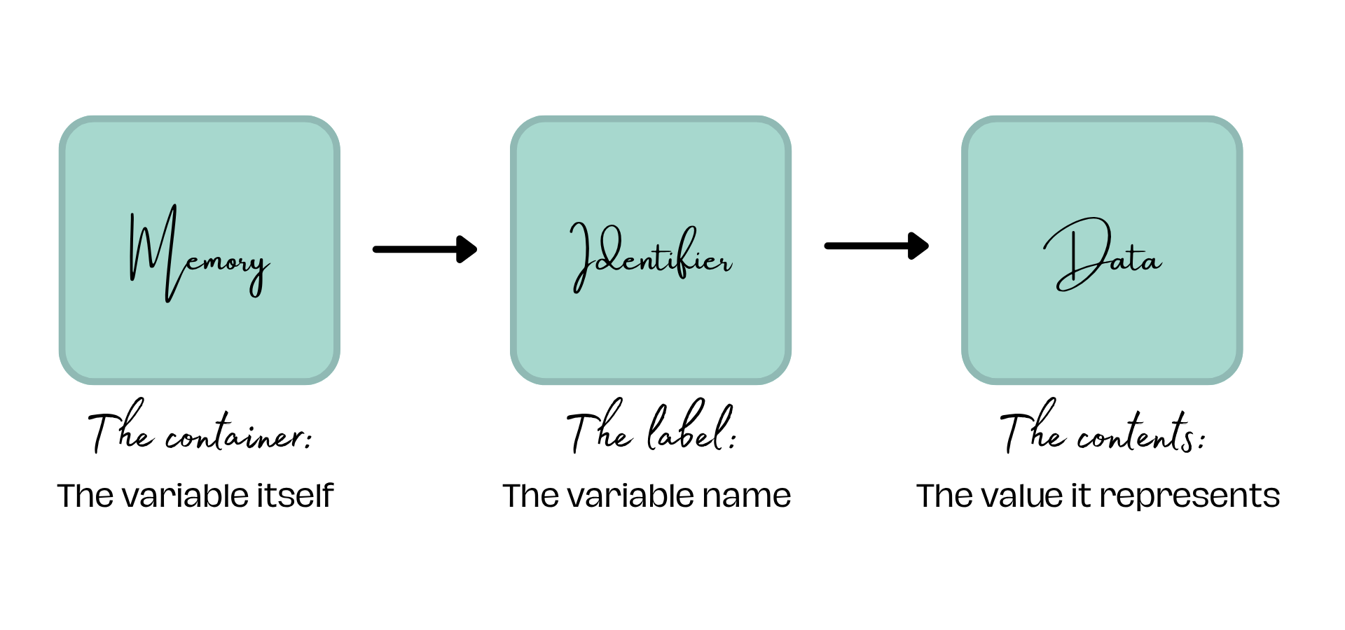 The Label on the Box: Every box needs a label so you know what's inside without opening it. This is the variable name. It's a unique identifier you give to your variable.